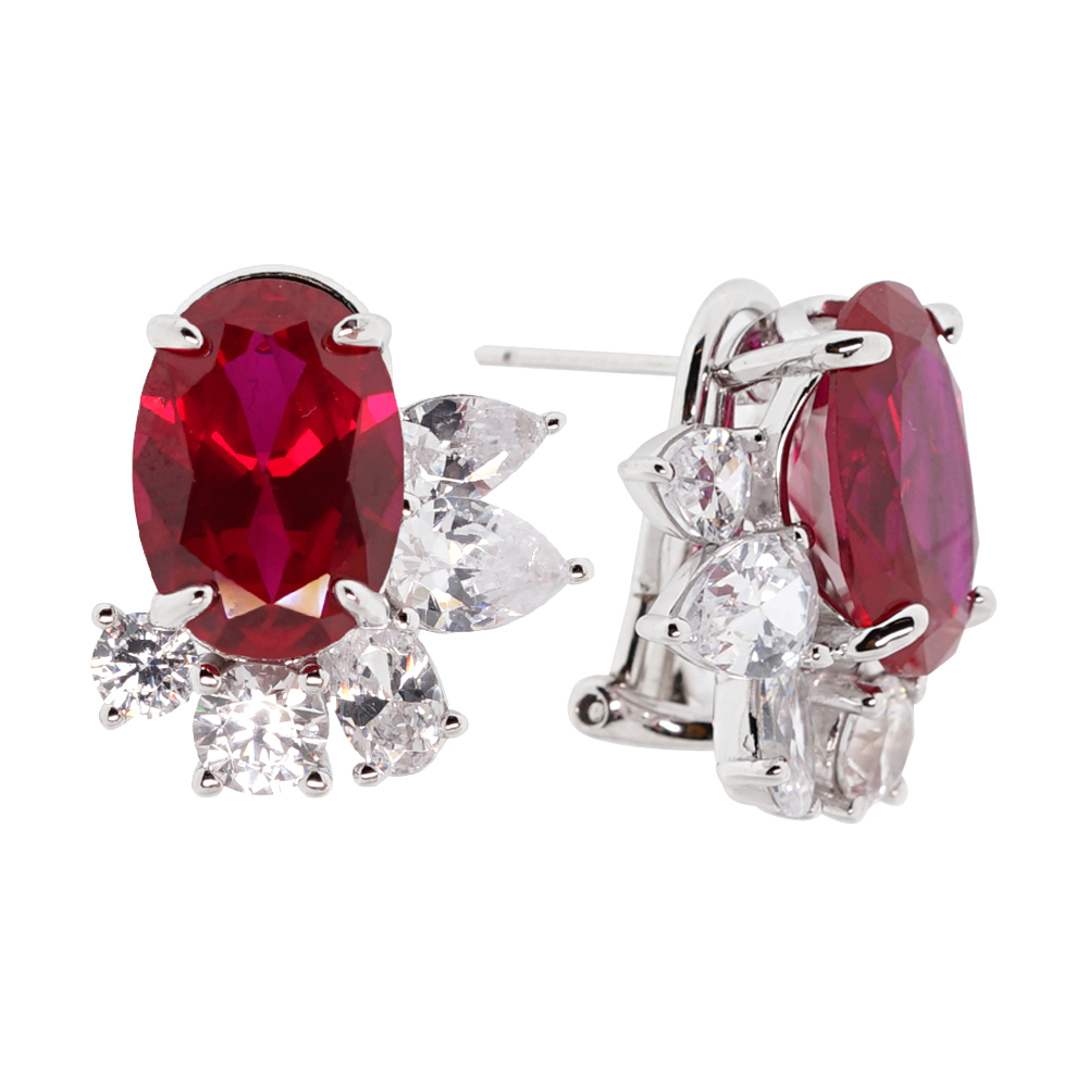 Ohrringe aus 925 Silber mit roten und farblosen Zirkonia