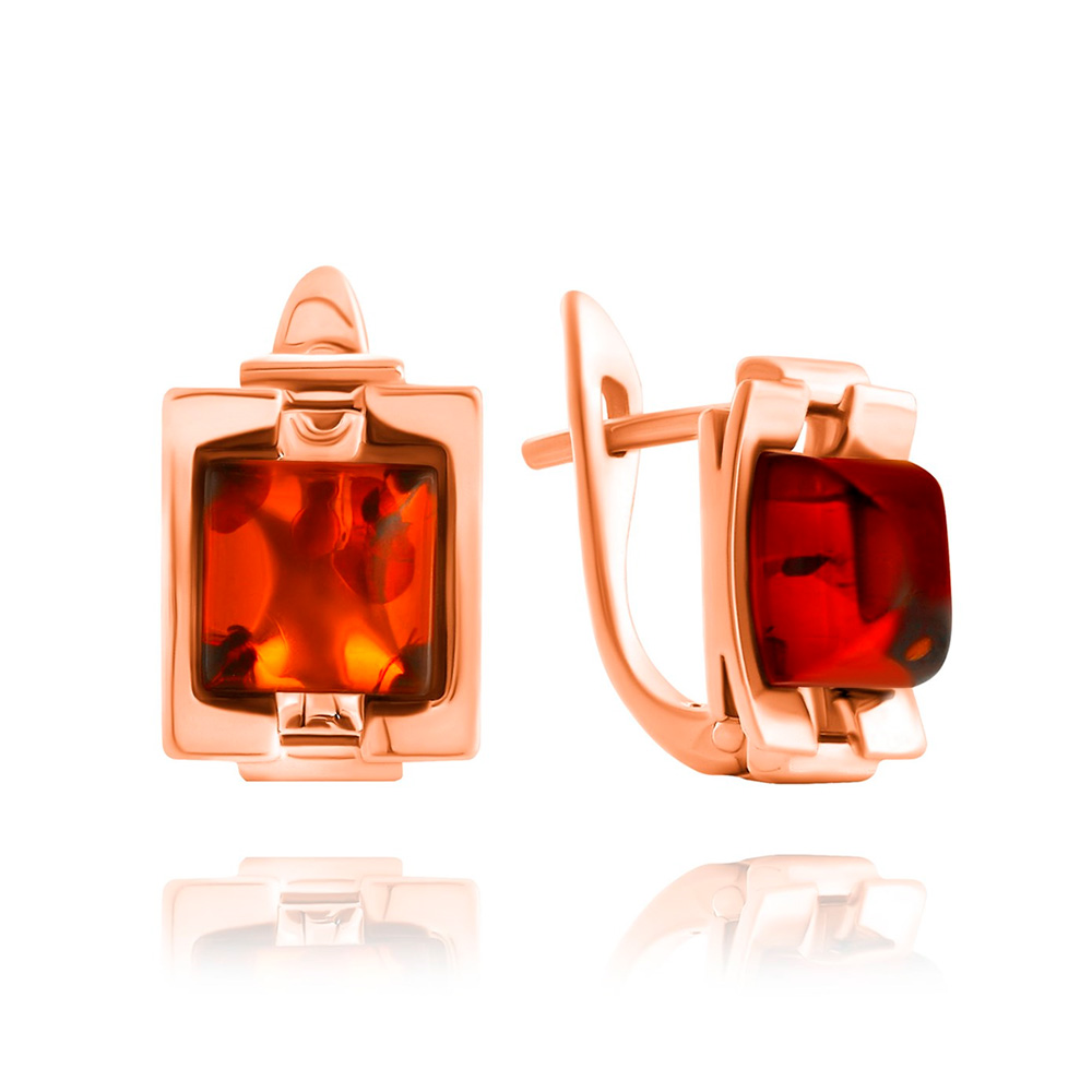 Ohrringe aus vergoldetem 925 Silber mit roten quadratischen Bernsteinen - Moderne Eleganz in klaren Formen