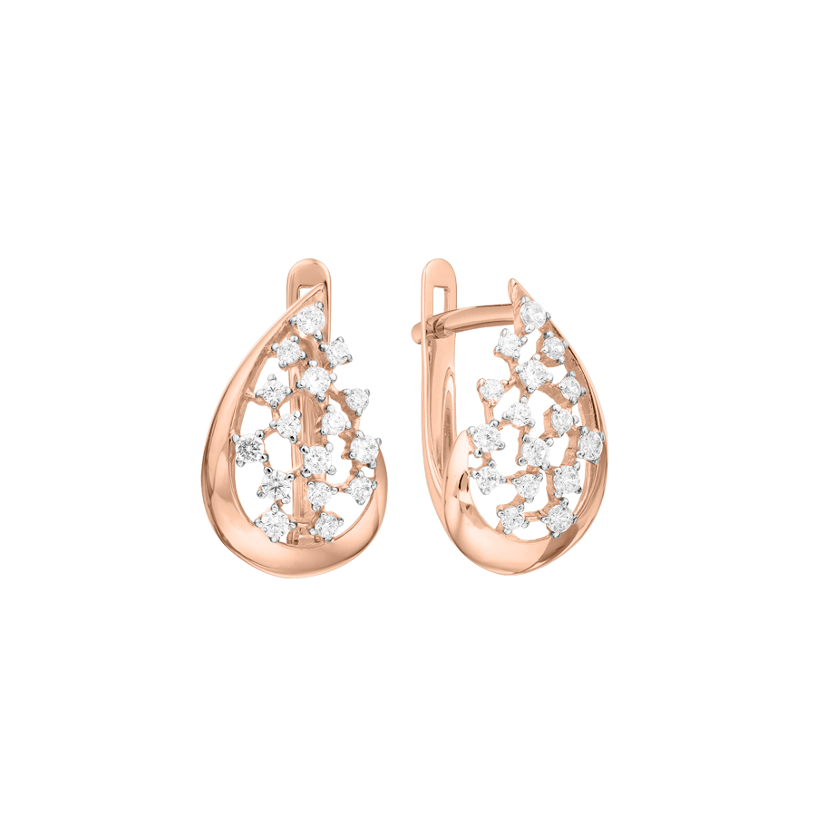 ansprechender Ohrringe, Rotgold 585, Zirkonia, Höhe ca. 16 mm