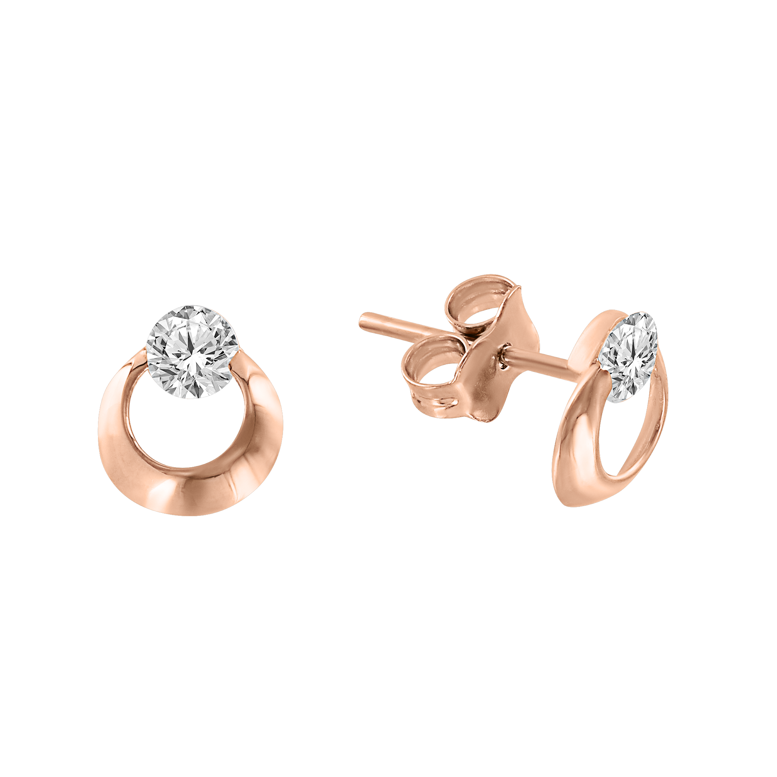 Originelle Ohrstecker aus 585er Rotgold, mit Zirkonia, Höhe ≈ 8 mm.