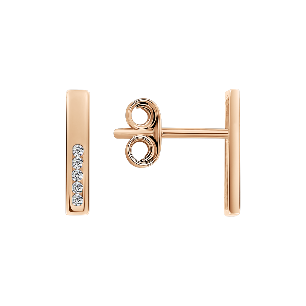 Klare geometrische Linien treffen auf den funkelnden Glanz feiner Steine – ein perfektes Zusammenspiel von Schlichtheit und Raffinesse. Die vertikal gesetzten Zirkonia reflektieren das Licht bei jeder Bewegung und verleihen dem Schmuckstück eine moderne Eleganz. Mit einer Höhe von ca. 10 mm sind die Ohrstecker dezent, leicht und angenehm zu tragen – ideal sowohl im Alltag als auch zu besonderen Anlässen. Sie lassen sich wunderbar solo tragen oder mit anderem Rotgold-Schmuck kombinieren.Ein stilvolles Accessoire für Frauen, die Minimalismus und feine Details lieben.