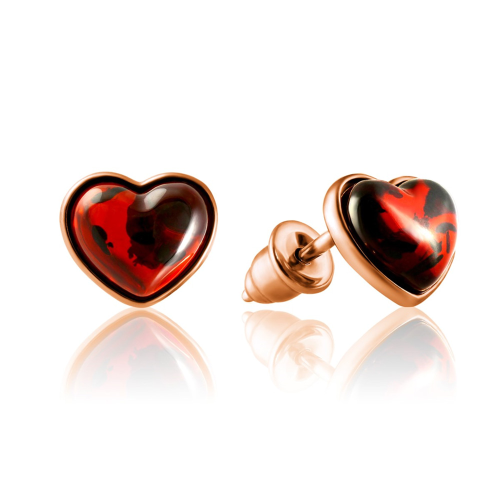 Ohrstecker aus 925 Silber in Herzform mit Bernstein, vergoldet