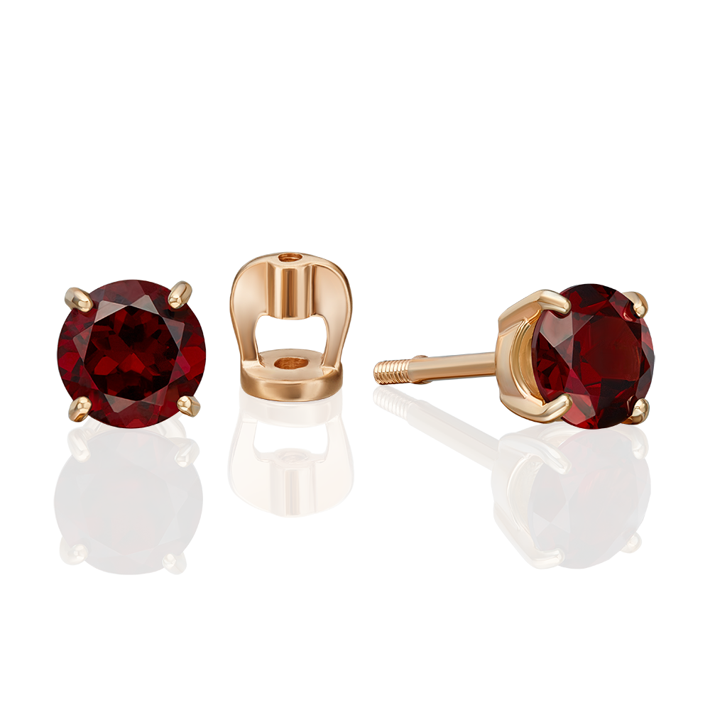 Elegante Ohrstecker aus russischem Rotgold 585 mit Granat (Durchmesser ca. 5 mm). Die tiefe, satte Farbe des Steins steht für Leidenschaft, Kraft und Energie, während der klassische Schliff sein natürliches Funkeln hervorhebt. Das schlichte Design und der praktische Schraubverschluss machen diese Ohrringe zu einem vielseitigen Begleiter – perfekt sowohl für den Alltag als auch für besondere Anlässe.Ein stilvoller Akzent, der jeder Trägerin Eleganz und Ausstrahlung verleiht.