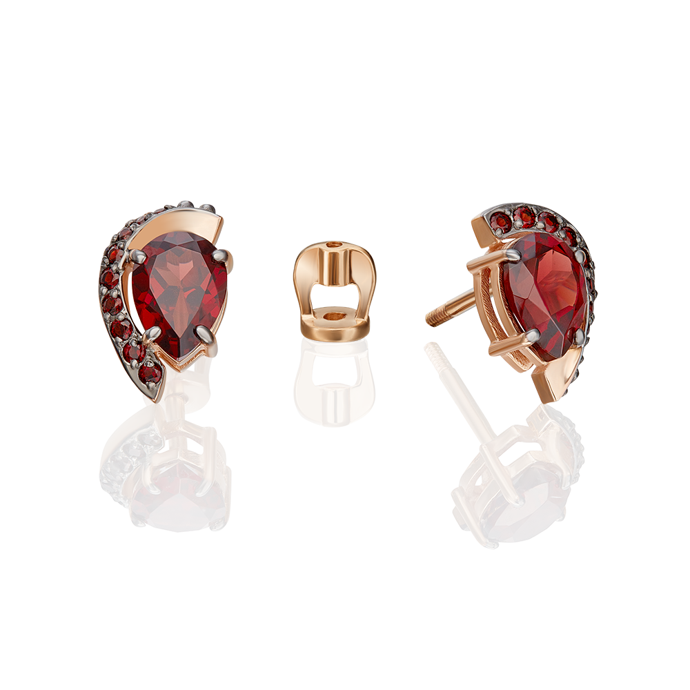 Ohrstecker aus Rotgold 585 mit Granat, Höhe ca. 12 mm, Breite ca. 9 mm – tropfenförmiges Design mit intensiver Ausstrahlung
