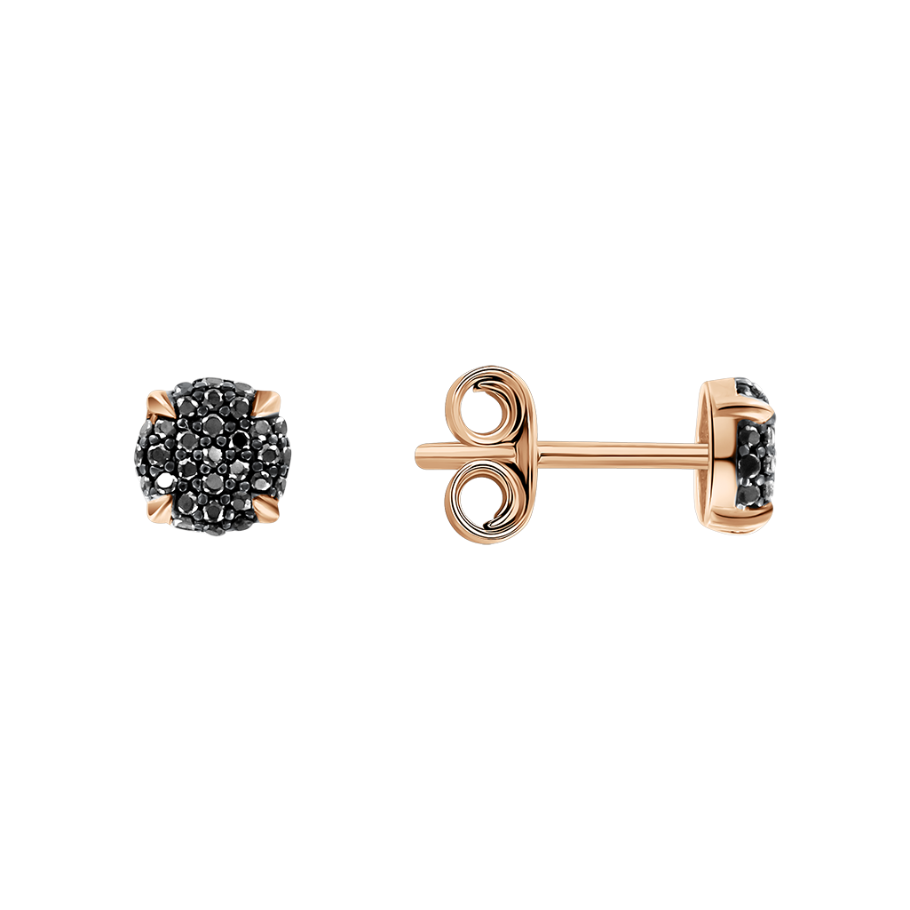 Elegante Ohrstecker aus russischem Rotgold 585, besetzt mit funkelnden schwarzen Zirkonia
