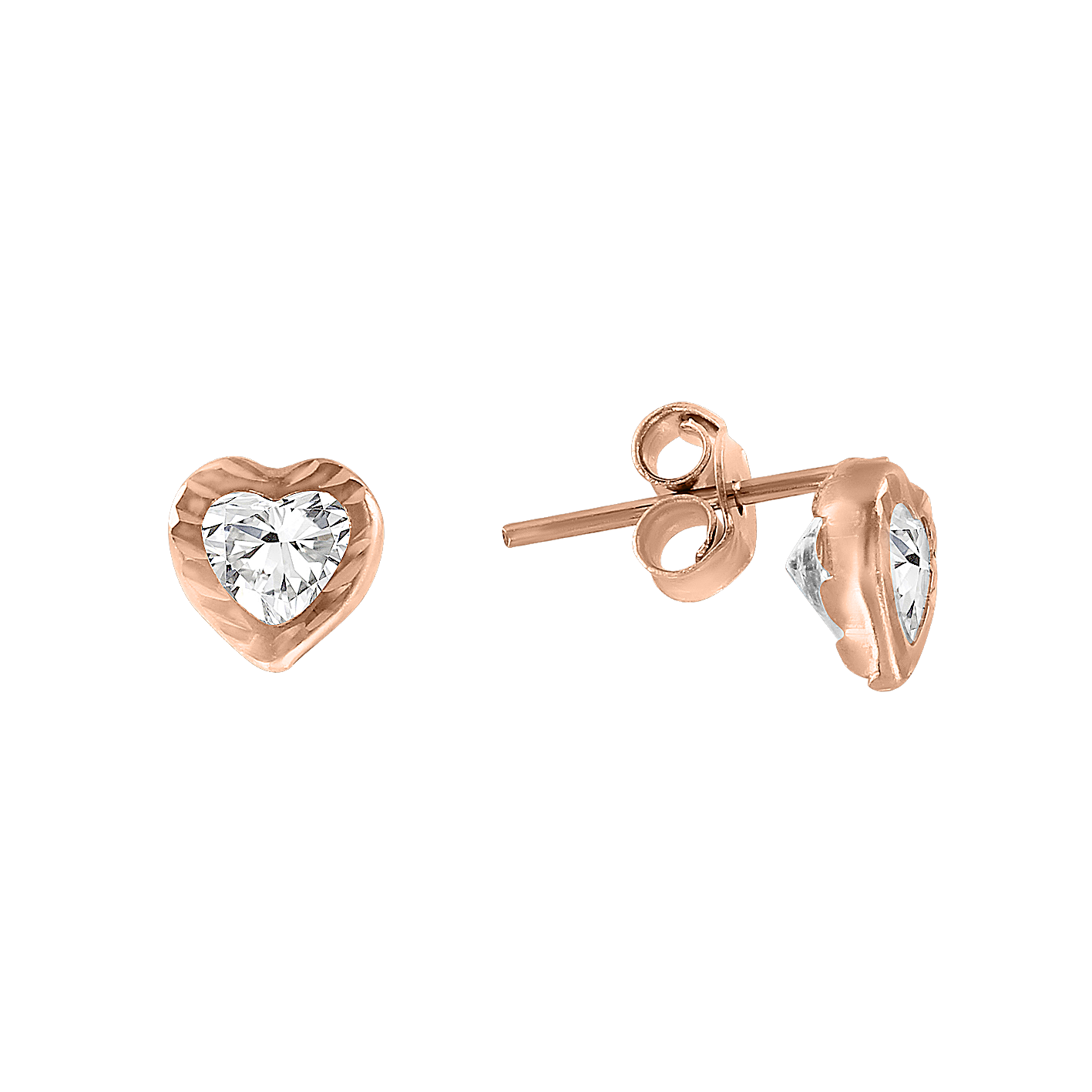 Charmante Ohrstecker in Herzform aus 585er Rotgold mit Zirkonia, Durchmesser ≈ 5 mm.