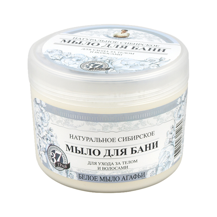 - die weiße Seife, zusätzlich zu vielen heilenden sibirischen Kräutern, Ziegenmilch, weiße Weide-Extrakt und ein paar der wertvollsten Öle für Haut und Haar, die dieses Produkt die nährende, leichte und duftende macht.