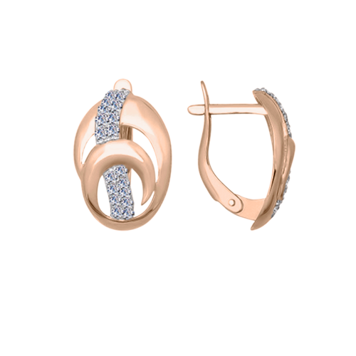 Original-Ohrringe aus Rotgold 585 mit Zirkonia besetzt.Rotgold ist ein wertvolles Edelmetall, aus dem Juweliere bezaubernde Schmuckstücke herstellen, es hat auch ausgezeichnete Qualitätseigenschaften, verliert seinen schönen schimmernden Glanz nicht für lange Zeit. Die ungewöhnliche Form des Schmucks und die Einstreuung von funkelnden Zirkonia verleihen Lebendigkeit und Charme.