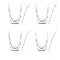8-er Set: Vier Doppelwandige Latte Macchiato Gläser (je 440 ml) & vier Glasstrohhalme