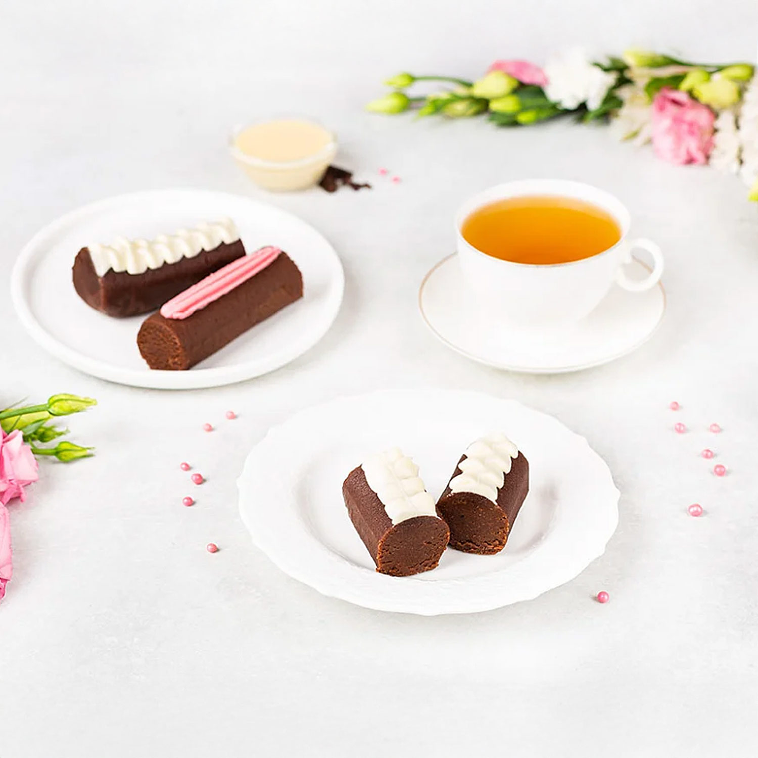 - Mischung aus klassischem und schokoladigem Biskuit