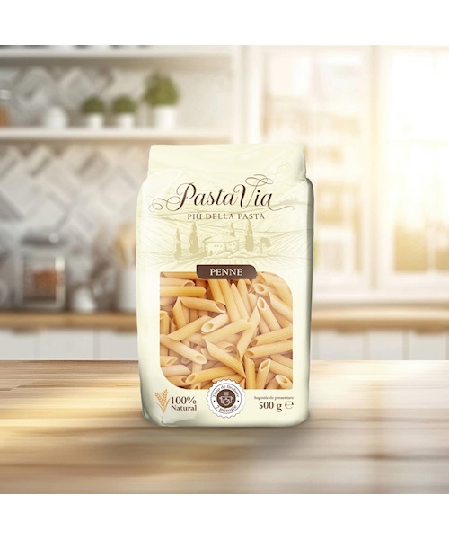 Klassische Penne – perfekt für Saucen und AufläufeDiese rumänischen Hartweizengrießnudeln in traditioneller Federform (Penne) mit charakteristischen Rillen halten Saucen perfekt und überzeugen durch ihren authentischen Al dente-Biss.