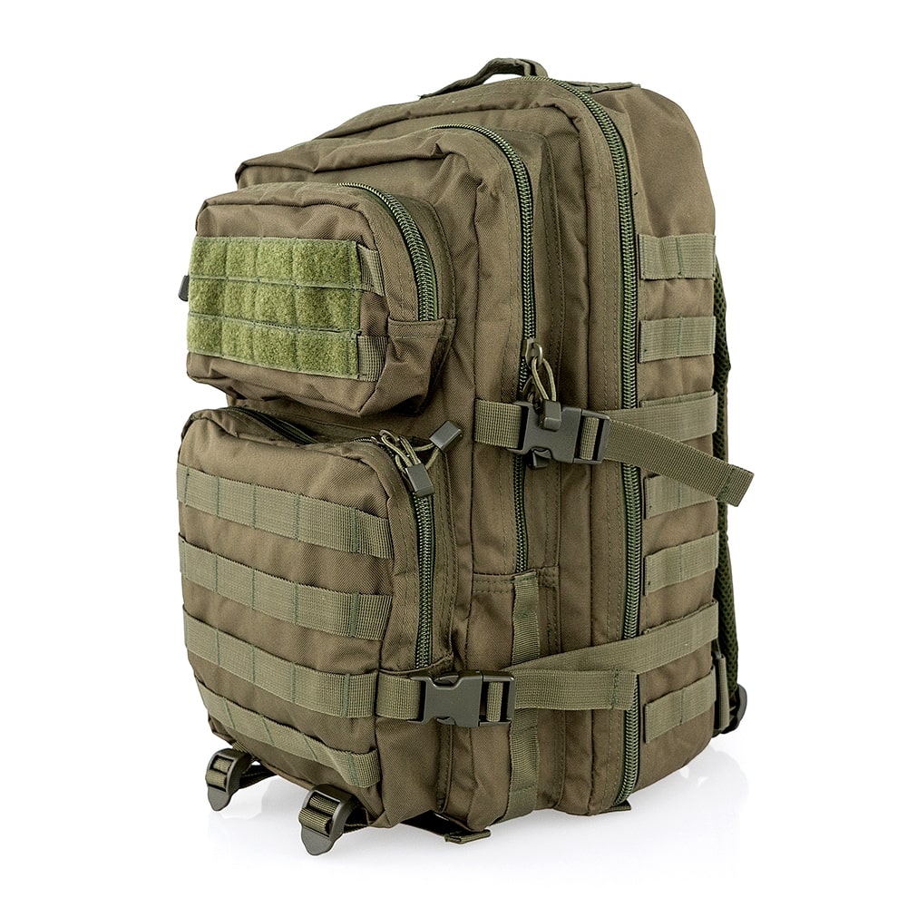 In den beiden Hauptfächern finden zahlreiche Ausrüstungsgegenstände Platz, zusätzlich unterstützt durch die beiden aufgesetzten Fronttaschen und zahlreiche Netzfächer im Innenbereich. Dadurch lässt sich der Rucksack auch ideal zur Aufbewahrung für spezielle Einsatzszenarien nutzen. Dazu zählen beispielsweise die Unterbringung von Regenkleidung oder Notnahrung im Fahrzeug oder für die Nutzung beim Angeln.Durch die durchdachten Zusatzfunktionen wie der mit Klettband versiegelten Aufbewahrungstasche für eine Trinkblase und die großflächig angebrachten Molle Schlaufen lässt sich der Stauraum zudem noch modular um weitere Taschen erweitern. Je nach angedachter Nutzung lässt sich der Assault Rucksack für Männer dadurch beispielsweise bei Wanderungen oder vergleichbaren Outdoor-Aktivitäten als strapazierfähiger Daypack nutzen oder auch als praktischer Begleiter auf Reisen und Ausflüge. Dabei fungiert die Trinkblasentasche dann als praktischer Einschub für Tablet oder Laptop.