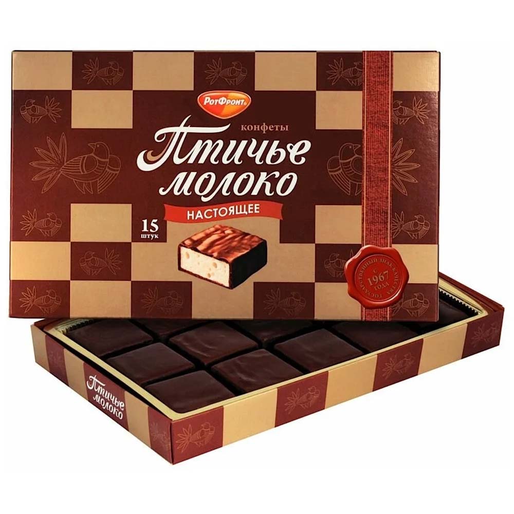 RotFront Schaumzuckerkonfekt "Ptitschje Moloko" in Schokoladenglasur mit Sahnegeschmack, 200 g (15 St.)