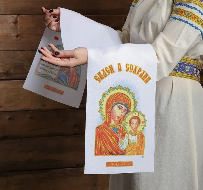 Ruschnik mit Ikone-Abbildung "Die Muttergottes und der allmächtige Herr", 120 x 24 cm