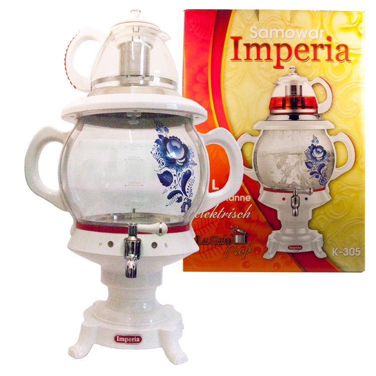 Der Samowar "Empire" ist der einzige Samowar aus hitzebeständigem gehärtetem Glas. Es ist voluminös, schön und mit den modernsten Funktionen ausgestattet: