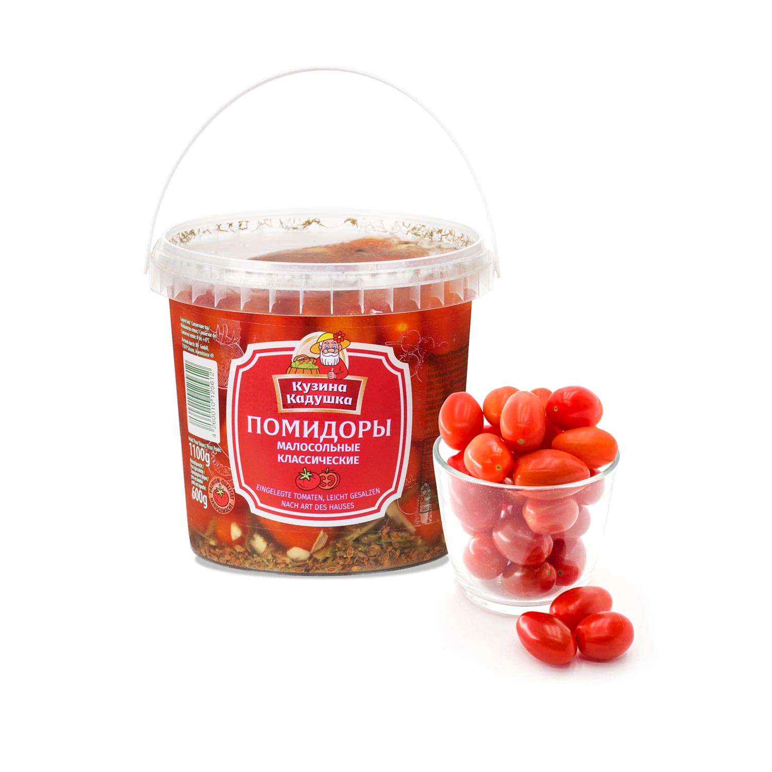 - Kuzina Kaduschka kleine Tomaten eingelegt klassik, 1 l: Süß-säuerliche, aromatische Eiertomaten im würzigen Sud.