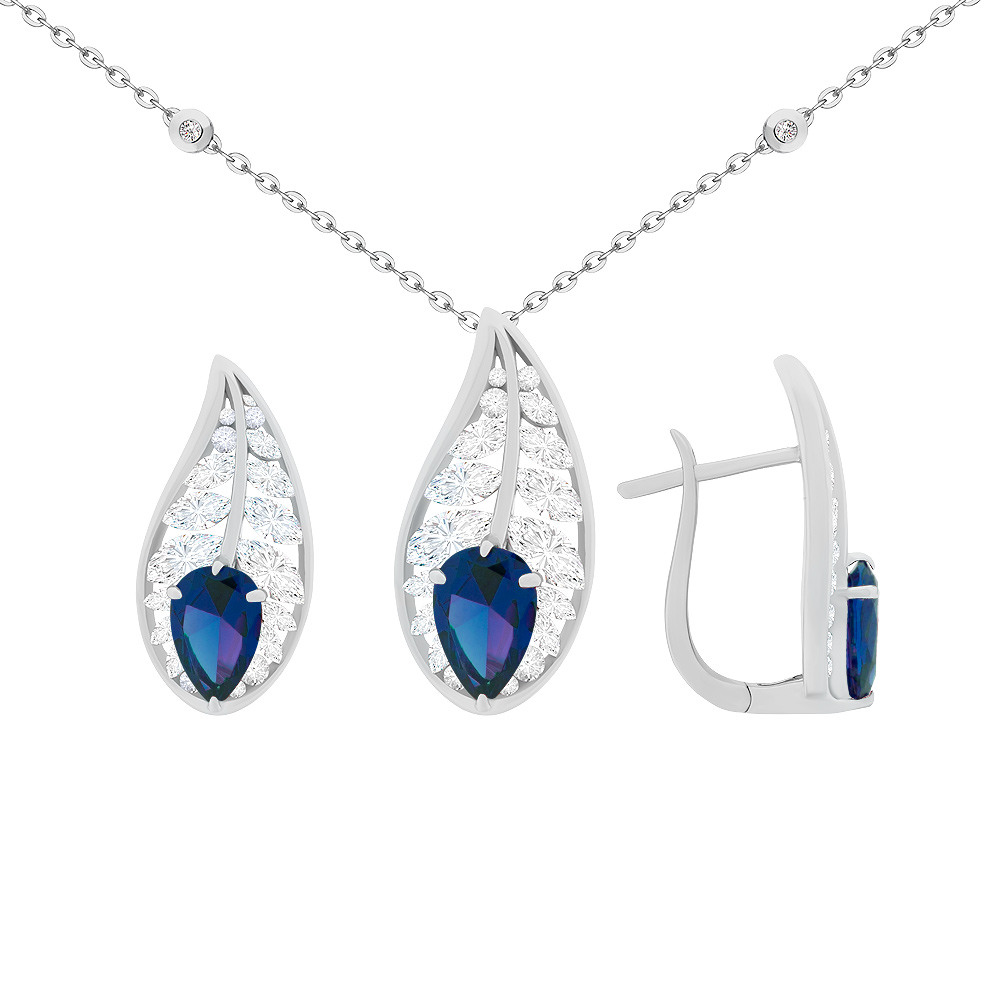 Schmuck-Set: Ohrringe + Anhänger auf Kette, aus 925 Silber, mit Zirkonia-Steinen in verschiedenen Farben