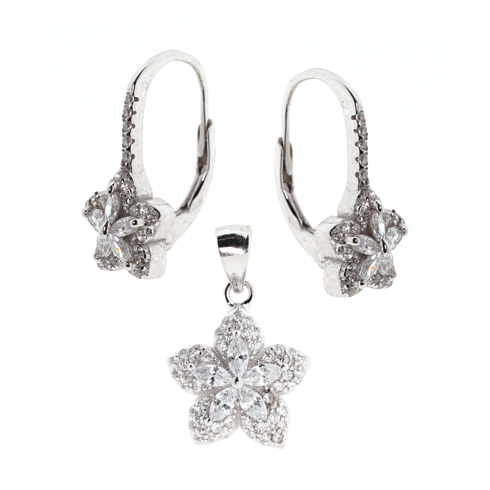 Schmuckset aus 925 Silber: sternförmige Ohrringe und Anhänger mit Zirkonia