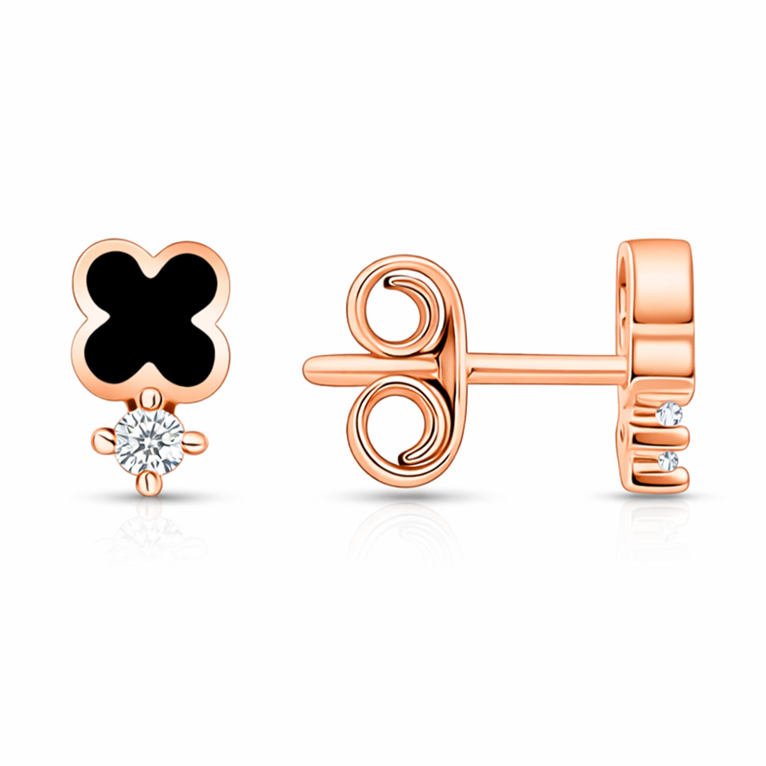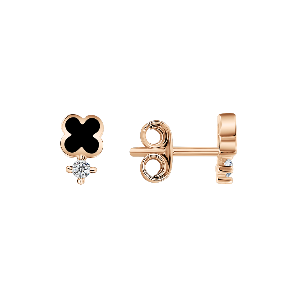 Schöne Ohrstecker aus Rotgold 585 mit Zirkonia und schwarzer Emaille, Höhe ca. 5 mm