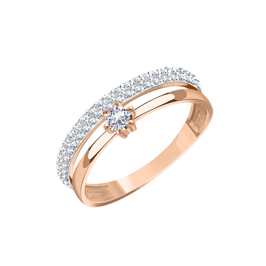 Dieses schöne Damenring aus russischem 585er Rotgold ist mit 46 Zirkonia-Steinen verziert und hat eine Breite von ca. 6 mm vorne. Ein auffälliger, ungewöhnlicher Ring, der die Blicke mit seinem Design und der Qualität der Handarbeit auf sich zieht. Das Design des Rings mit der geteilten Schiene in Form von zwei verschiedenen dünnen Ringen sieht stilvoll und modern aus, während die eingelegten Zirkonia-Steine dem Schmuckstück Leichtigkeit und Raffinesse verleihen. Die Form des Rings, bestehend aus mehreren Ringen, ist ein Trend der letzten Jahre. Wenn man etwas Besonderes und gleichzeitig Trendiges möchte, kann man ein Modell wählen, das wie mehrere Ringe aussieht. Solche Schmuckstücke wirken frisch und raffiniert. Stilvoll, prächtig und selten, ist es darauf ausgelegt, die Umgebung zu beeindrucken und zu zeigen, wie vielseitig die Person ist, die es trägt. Es wird bei der Kreation praktisch jedes Outfits aktuell sein. Dieser Ring wird ein hervorragendes Geschenk sein! Ein Ring ist eines der romantischsten Symbole in der Schmuckkunst. Der Valentinstag oder der Geburtstag Ihres geliebten Menschen ist ein schöner Anlass, um erneut Ihre Liebe auszudrücken und Ihre Gefühle mit einem außergewöhnlich schönen Geschenk zu zeigen. Goldschmuck ist ein unvergleichliches Geschenk. Denn Gold ist ein Wert, der weder der Zeit noch dem Raum unterliegt. Schenken Sie Ihren Lieben goldene Geschenke. Sie werden die besten Erinnerungen an wichtige Ereignisse sein.