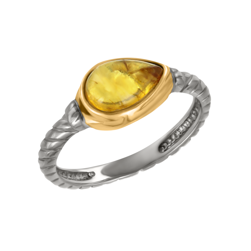 Der elegante, schwarz rhodinierte und vergoldete Ring mit tropfenförmigem Bernsteineinsatz zeichnet sich durch sein originelles Design sowie durch die Kombination von Materialien und Texturen aus. Der Bernstein verleiht dem Schmuckstück ein helles und attraktives Aussehen. Bernstein hat nicht den Glanz eines Diamanten oder die Schönheit eines Smaragds, aber seit vielen Jahrtausenden lieben die Menschen ihn wegen seiner Klarheit und Schlichtheit. Bernstein ist ein funkelnder Edelstein durch die Jahrhunderte und Völker bis in die heutige Zeit. Bernstein wird manchmal als „ein Stück Sonne in der Handfläche“ bezeichnet. Man glaubt, dass Bernstein Glück, Freude und Frieden bringt, dem Geist Lebendigkeit verleiht und die Gesundheit bewahrt. Das kreative und lakonische Design dieses Rings wird zweifellos alle ansprechen, die originellen und modernen Schmuck bevorzugen. Der Ring wird von Ohrringen und einem wunderbaren Anhänger begleitet. Fallen Sie auf, seien Sie direkt, seien Sie Sie selbst!GPSR-Informationen