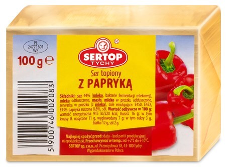 Entdecken Sie den klassischen polnischen Schmelzkäse mit feiner Paprika-Würze!Der Sertop Schmelzkäse mit Paprika überzeugt durch seine cremige Konsistenz und den harmonisch-würzigen Geschmack. Perfekt für Sandwiches, Burger oder als Dip – dieser Käse bringt Abwechslung in Ihre Küche!