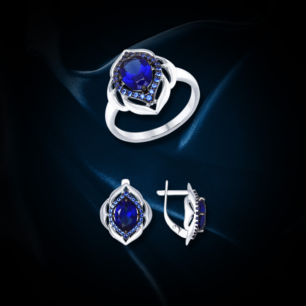 SET: Damenring und Ohrringe aus 925 Silber mit Zirkonia und Saphir HTS