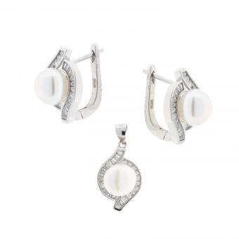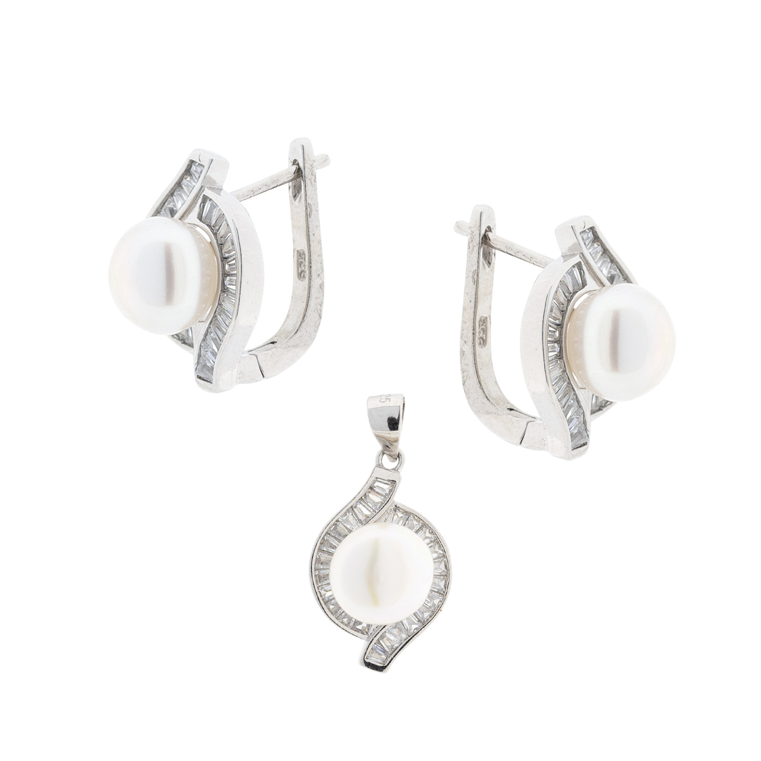Schmuck-Set: Ohrringe aus 925 Silber mit Perlen und passendem Anhänger
