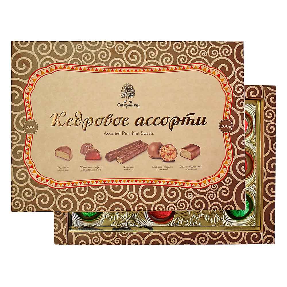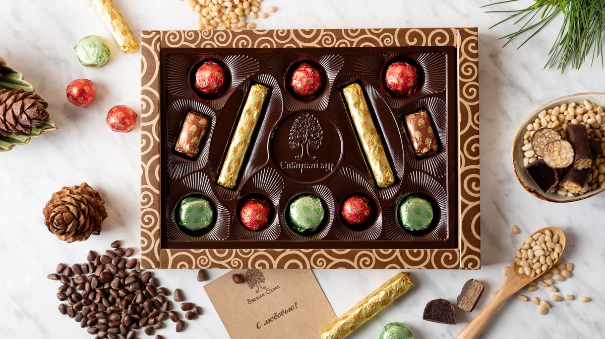 Dieses Pralinen-Set ist eine Sammlung natürlicher Pralinen mit verschiedenen Füllungen: mit Pinienkernen, Waldbeeren und Altai-Honig. Dieses originelle Süßigkeiten-Set mit einem besonderen sibirischen Geschmack ist ein großartiges Geschenk für jede Gelegenheit, das sicher gut ankommt!Das Set enthält die beliebtesten Süßigkeiten: