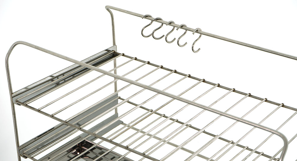 Als nächstes wird der Edelstahlrost installiert und der Räuchergut wie Schinken, Wurst, Fleisch, Käse oder Fisch usw. – aufgehängt oder darauf gelegt.