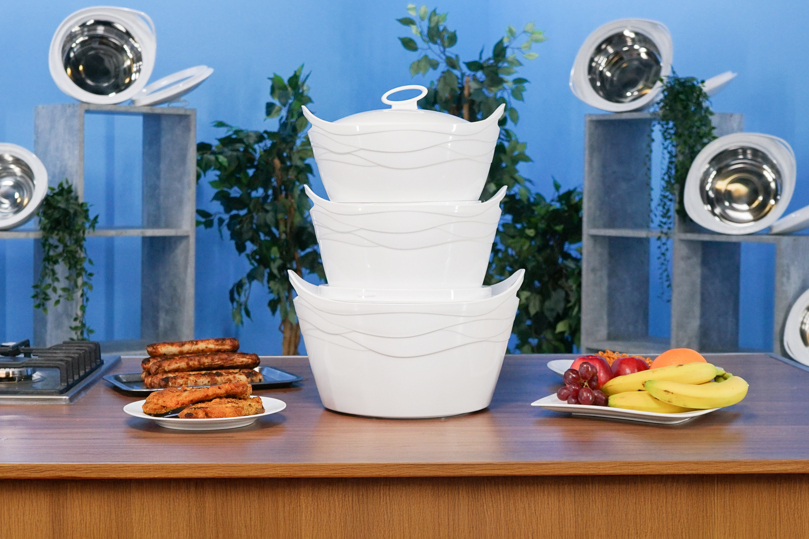 - Set besteht aus 3 Schüsseln, sowie passenden Deckeln