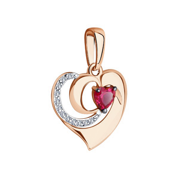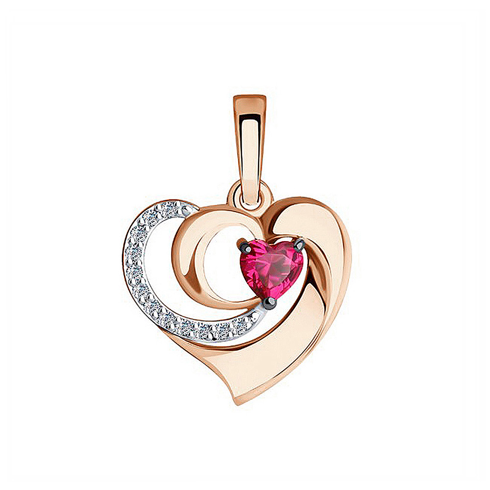 Sokolov Herz Anhänger aus 585 Rotgold mit Rubin und Zirkonia