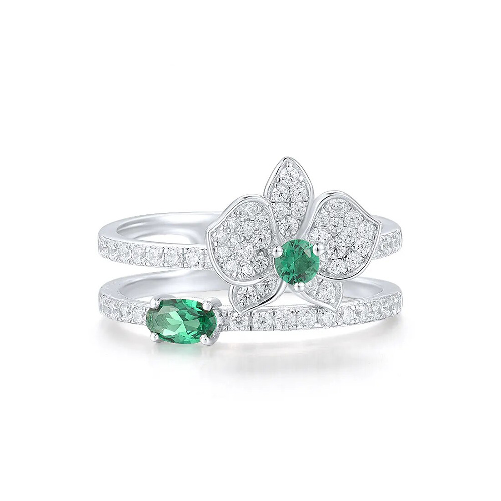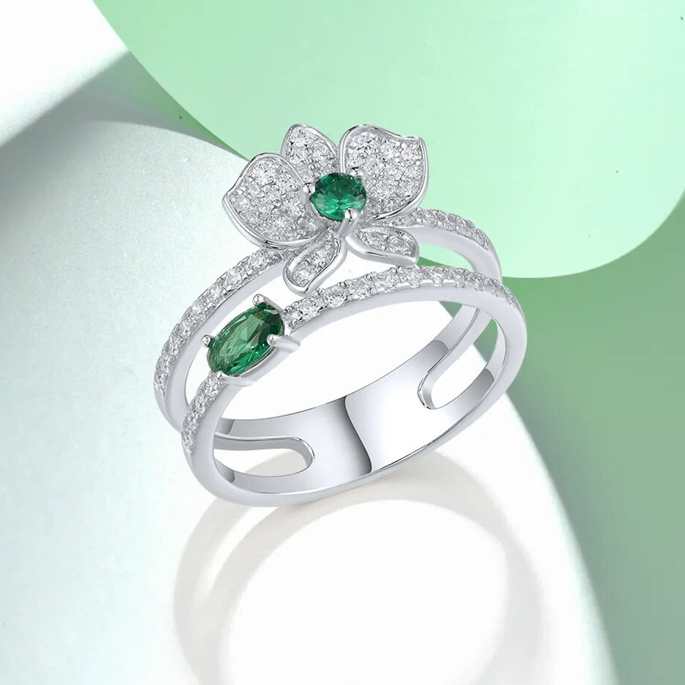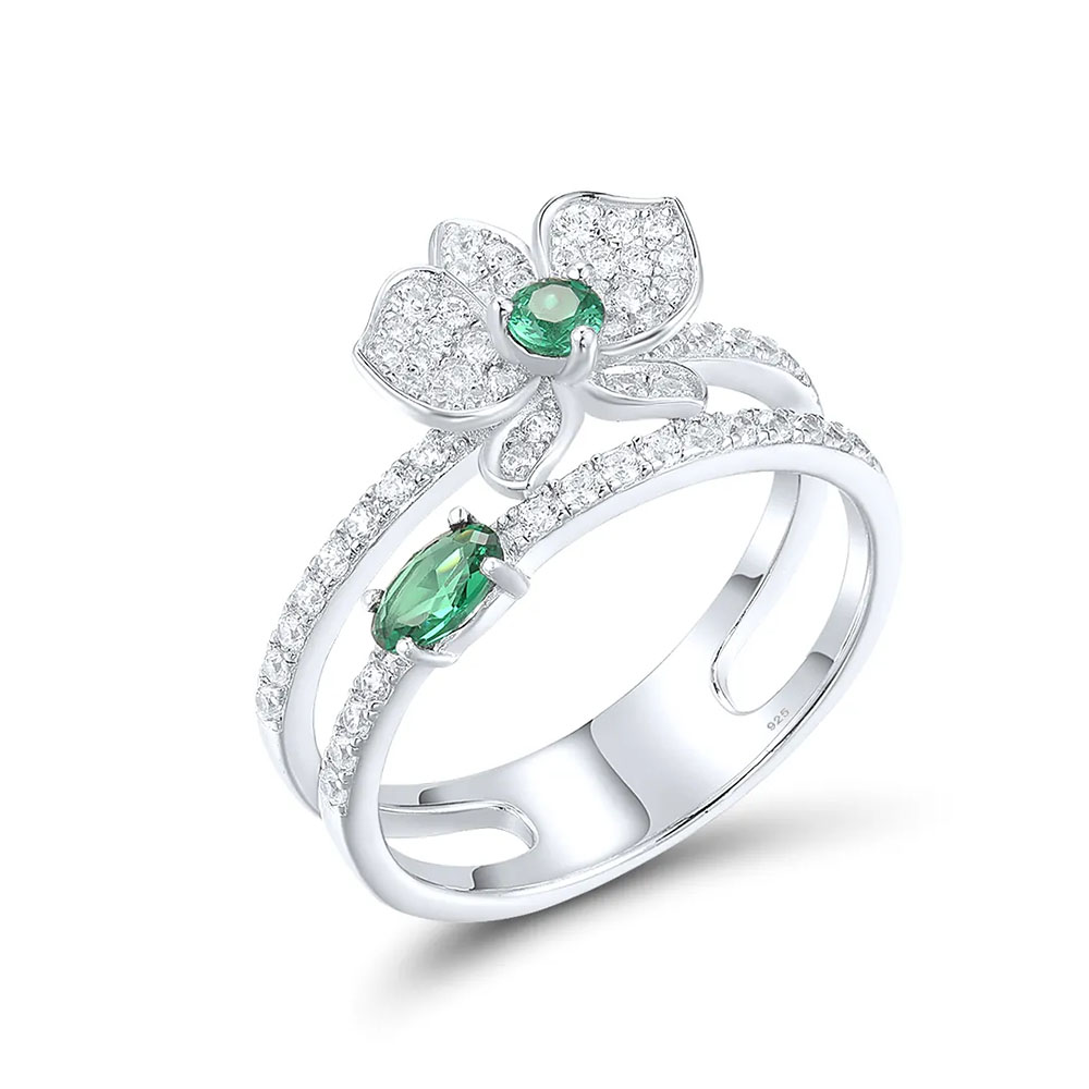 Sokolov Blumen Damenring aus 925 Silber mit grünen Spinellen und farblosen Zirkonia