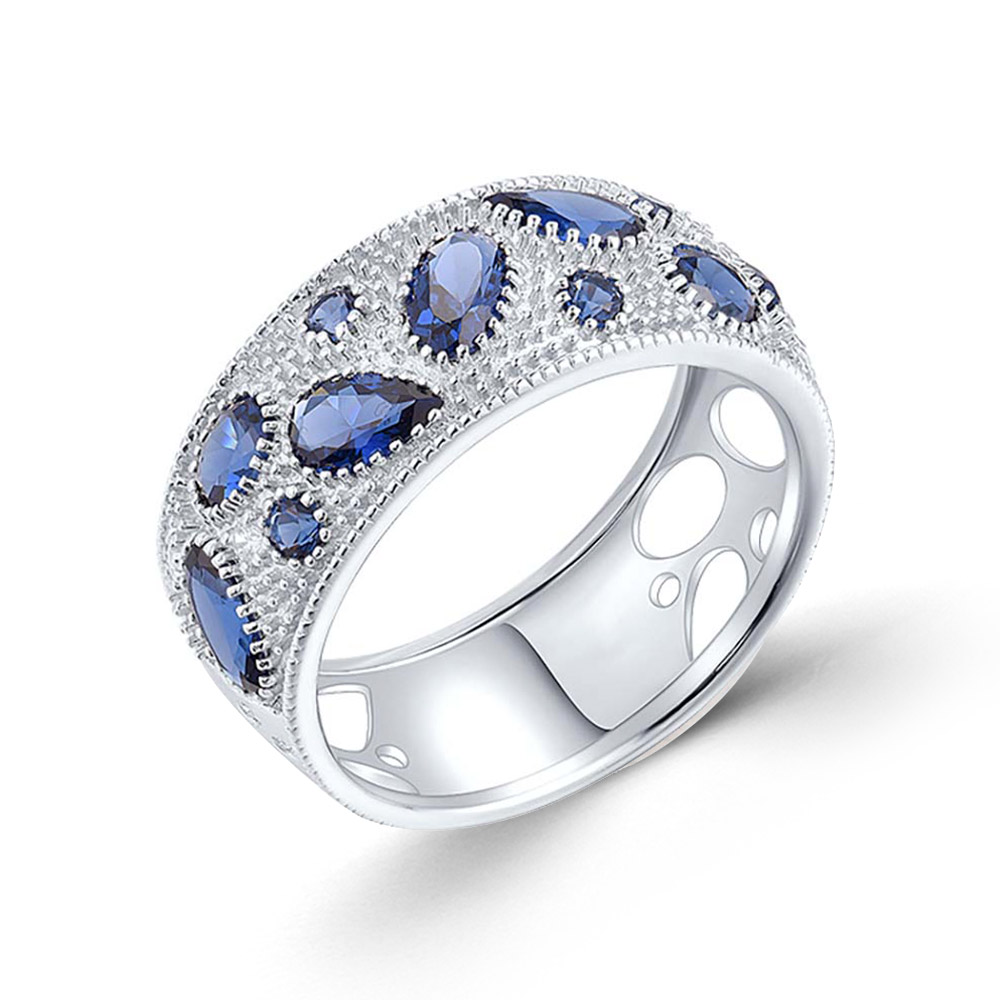 Sokolov breiter Damenring aus 925 Silber mit blauen und farblosen Zirkonia