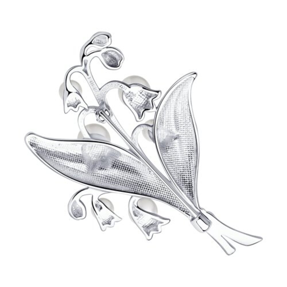 Brosche Maiglöckchen aus 925 Silber mit Perlen und grüner Emaille von SOKOLOV