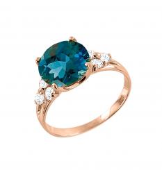 Sokolov Damenring aus 585 Rotgold mit blauem Topas und Zirkonia