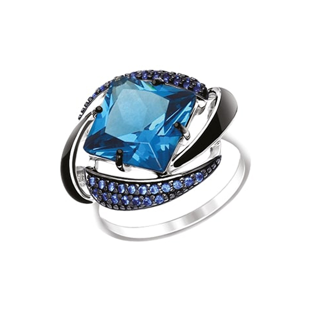 Damenring aus 925 Silber mit einem Sitall, Zirkonia und Emaille