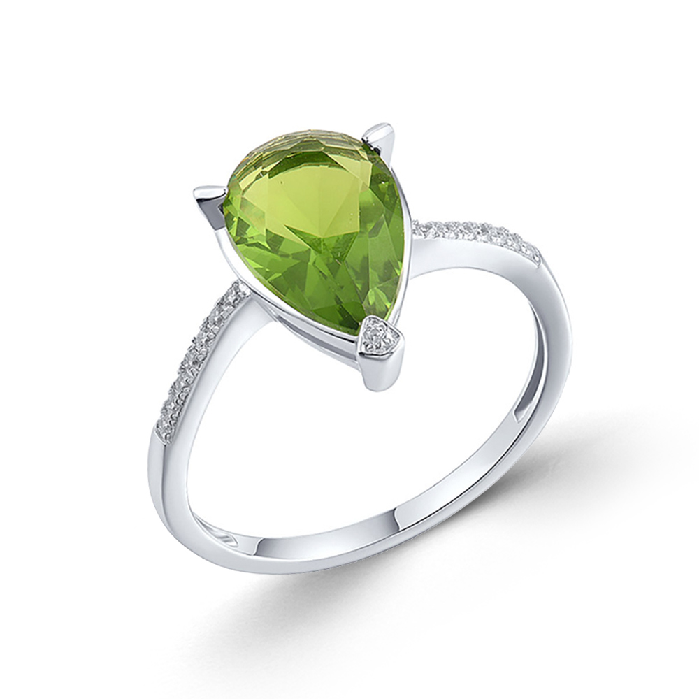 Sokolov Damenring aus 925 Silber mit grünem Glaskristall und farblosen Zirkonia