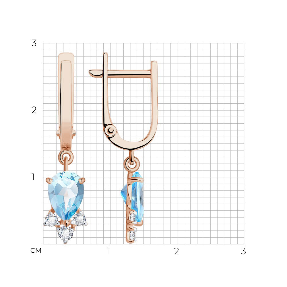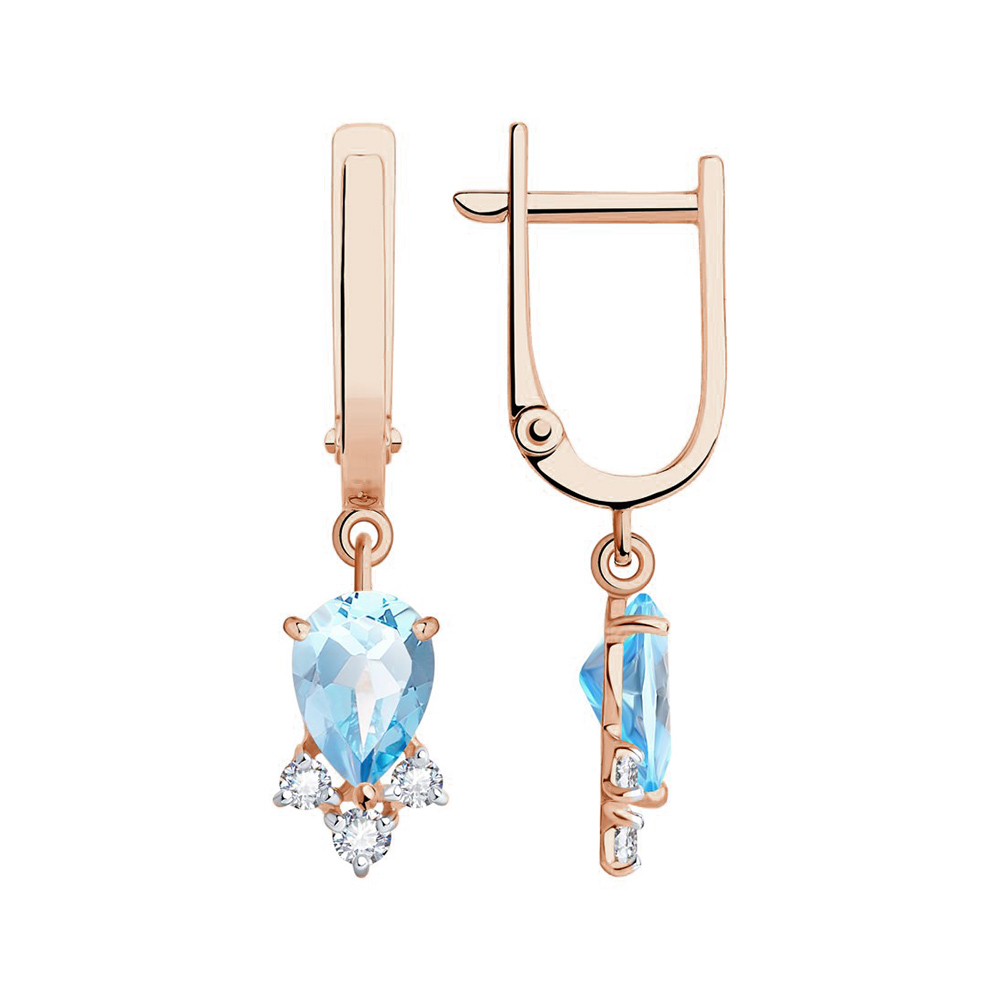 Sokolov Ohrhänger aus 585 Rotgold mit blauen Topasen und Zirkonia