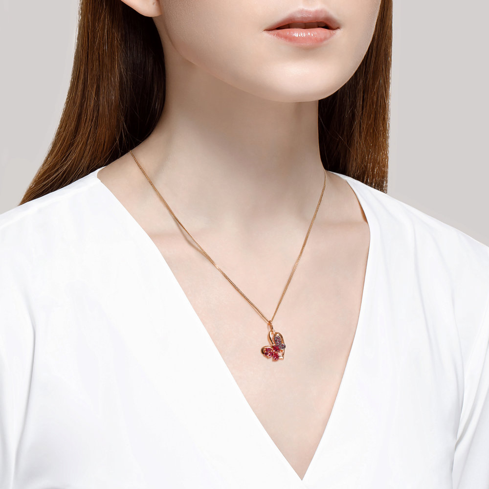 Schmetterling-Anhänger aus 585 Rotgold mit Korund HTS von SOKOLOV
