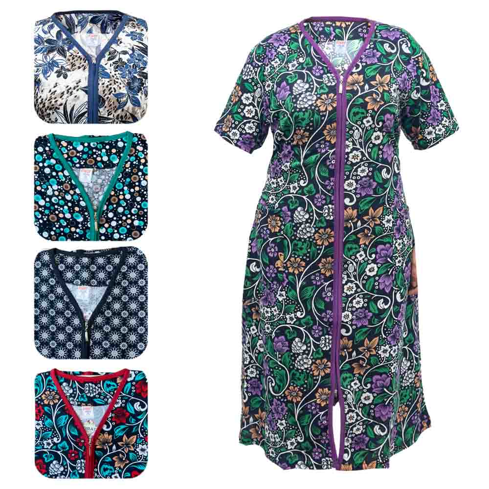 Sommer Hausmantel mit Reißverschluss 100% Baumwolle, Größen XL bis 6XL