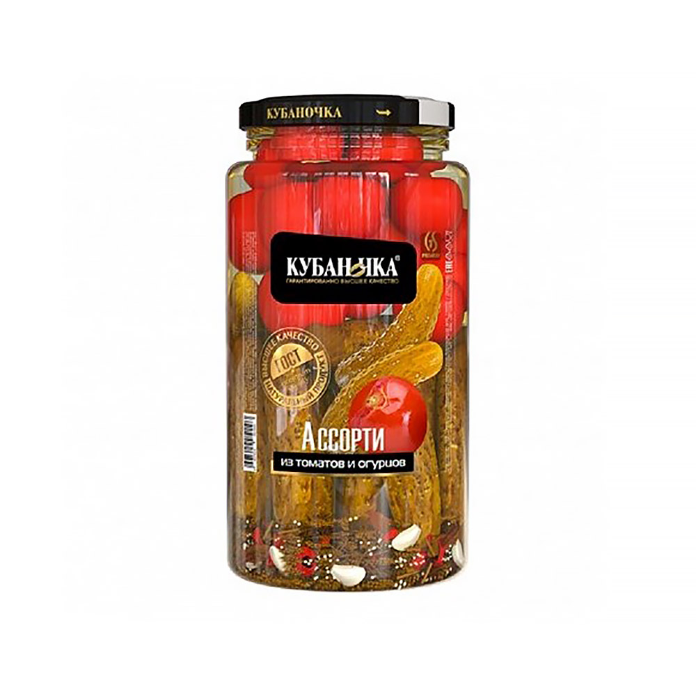- Kubanochka Assorti – Tomaten und Gurken, 720 g: Knackige Tomaten und Gurken im Glas – traditionell eingelegt, angenehm würzig und ideal zu Fleischgerichten oder pur als Snack.