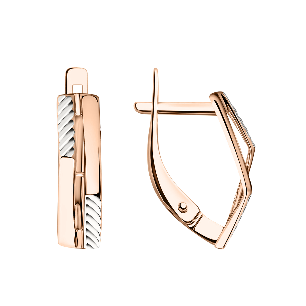 Diese Ohrringe aus edlem 585er Rotgold begeistern durch ihre raffinierte Kombination aus Glanz und Struktur.Die elegant gearbeiteten Diamant-Facetten verleihen dem Schmuckstück einen faszinierenden Schimmer, der bei jeder Bewegung das Licht einfängt. Das Zusammenspiel von polierten Flächen und fein strukturierten Details sorgt für ein modernes, luxuriöses Design.