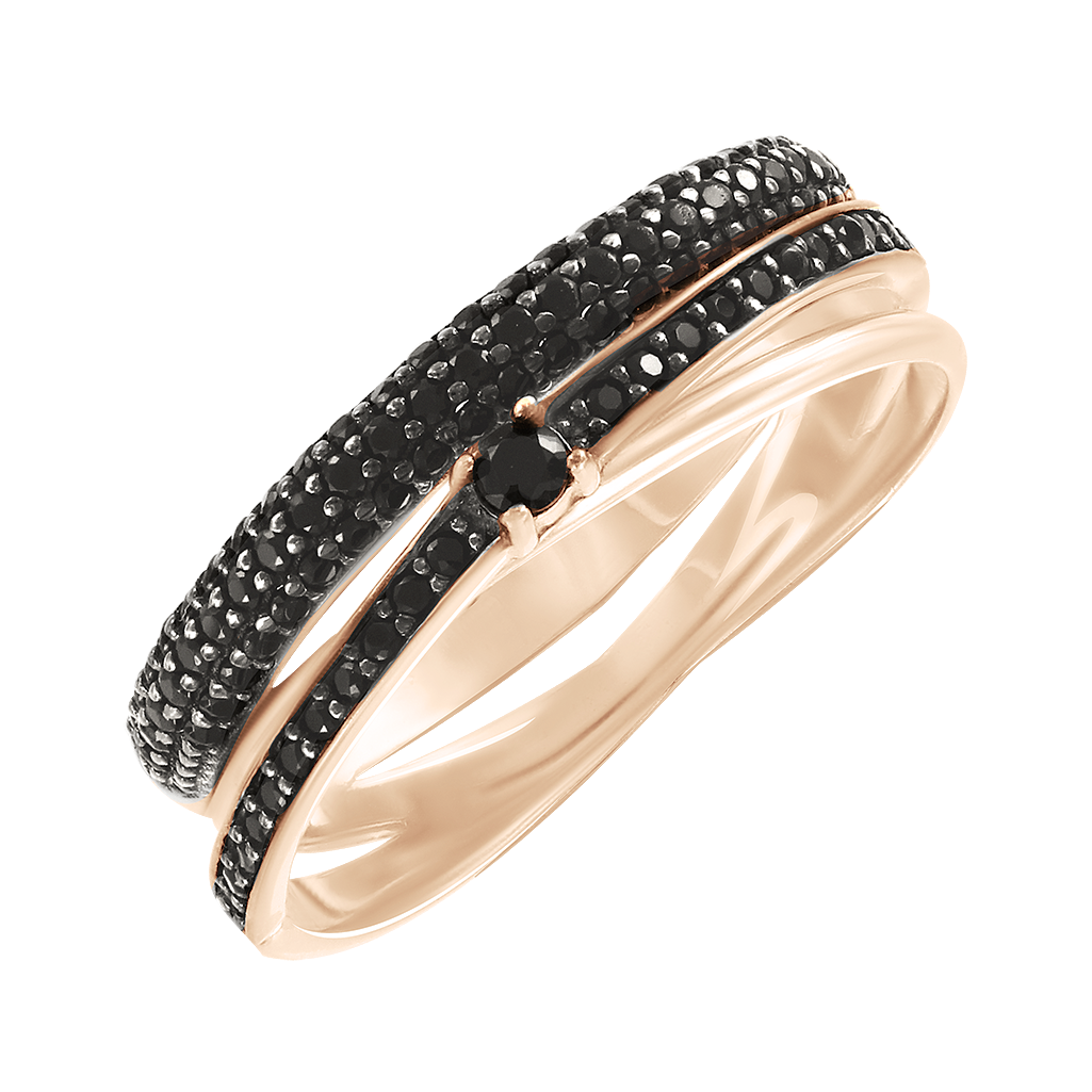 Stilvoller Damenring aus 585er Rotgold mit schwarzen Zirkonia