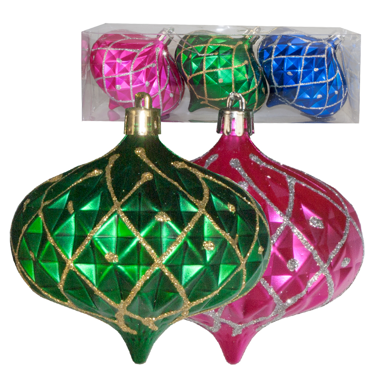 Verleihen Sie Ihrem Weihnachtsbaum mit dem bunten Tannenbaumschmuck-3er-Set in Rosa, Blau und Grün eine fröhliche Note