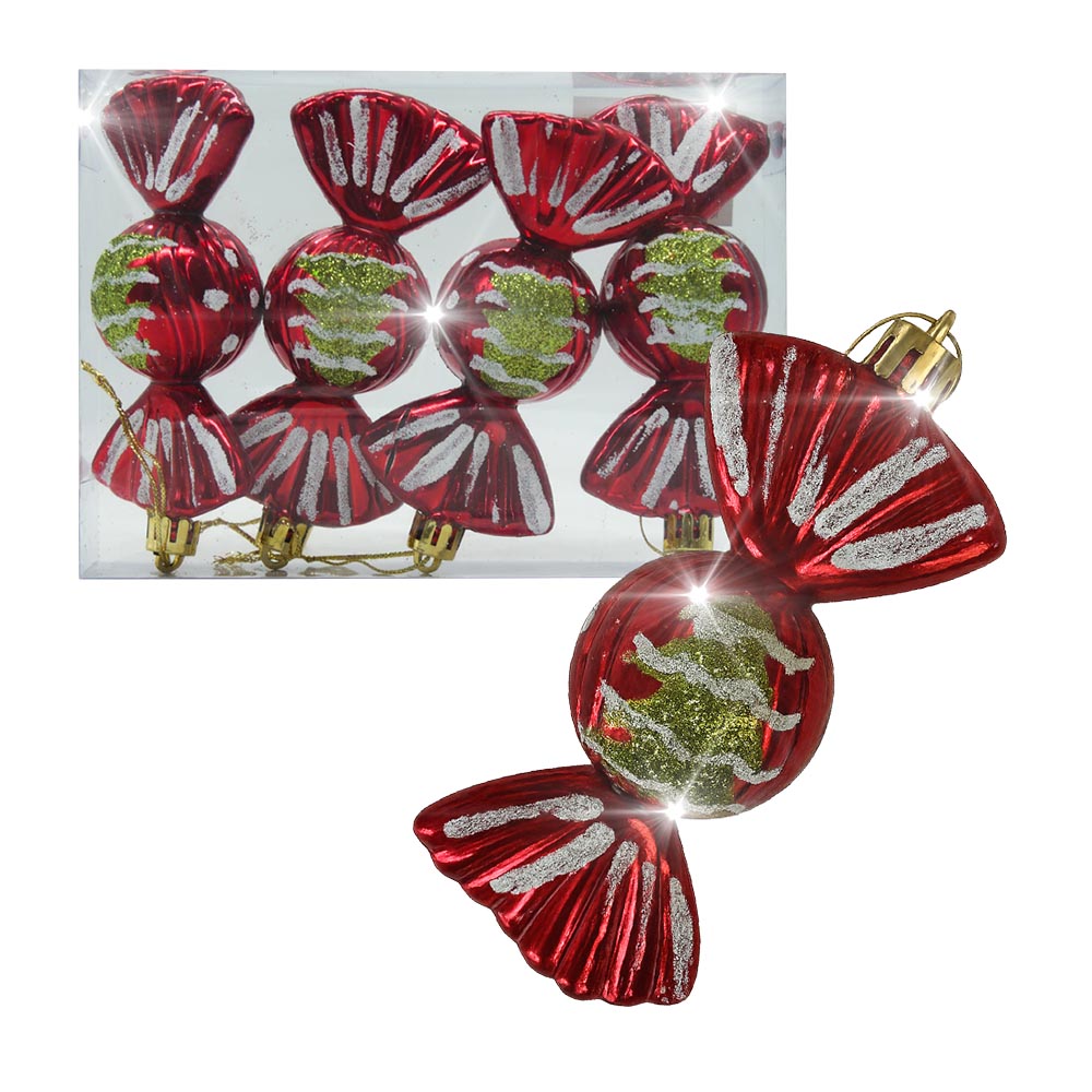 Tannenbaumschmuck-4er-Set "Bonbons", rot, 11 x 5 x 4 cm