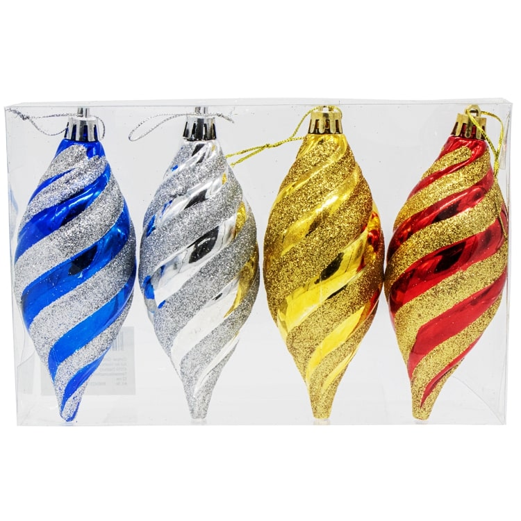 Tannenbaumschmuck 4er-Set Eiszapfen 12 cm, bunt mit gold und silber