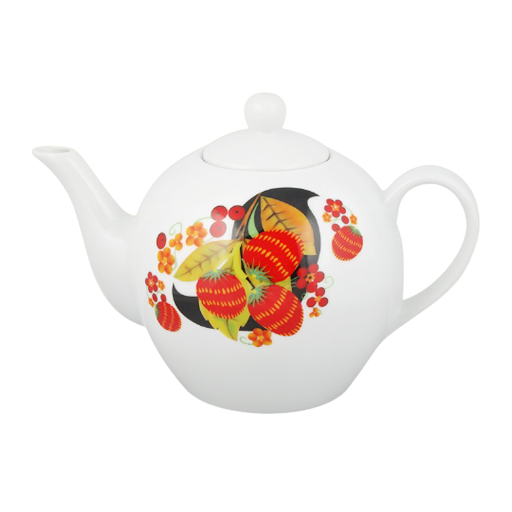 Eine 750-ml-Teekanne. Die Teekanne ist dazu bestimmt, aromatischen Tee oder Kräutermischungen zuzubereiten und auf dem Tisch zu servieren. Der Inhalt ist ausreichend für mehrere Personen. Die Teekanne ist aus hochwertigem Porzellan gefertigt. Diese Teekanne passt perfekt nicht nur für die festliche Anlässe (Weihnachten, Familienfeier, Geburtstag) sondern auch für den täglichen Gebrauch. Genießen Sie den aromatischen Tee aus unsere edle Teekanne. Ideal auch für losen Tee.Wenn Sie Ihre Lieblingsküche mit hellen Accessoires gemütlich gestalten möchten, dann wird die Teekanne mit Beerenmuster Ihre Einrichtung perfekt ergänzen.