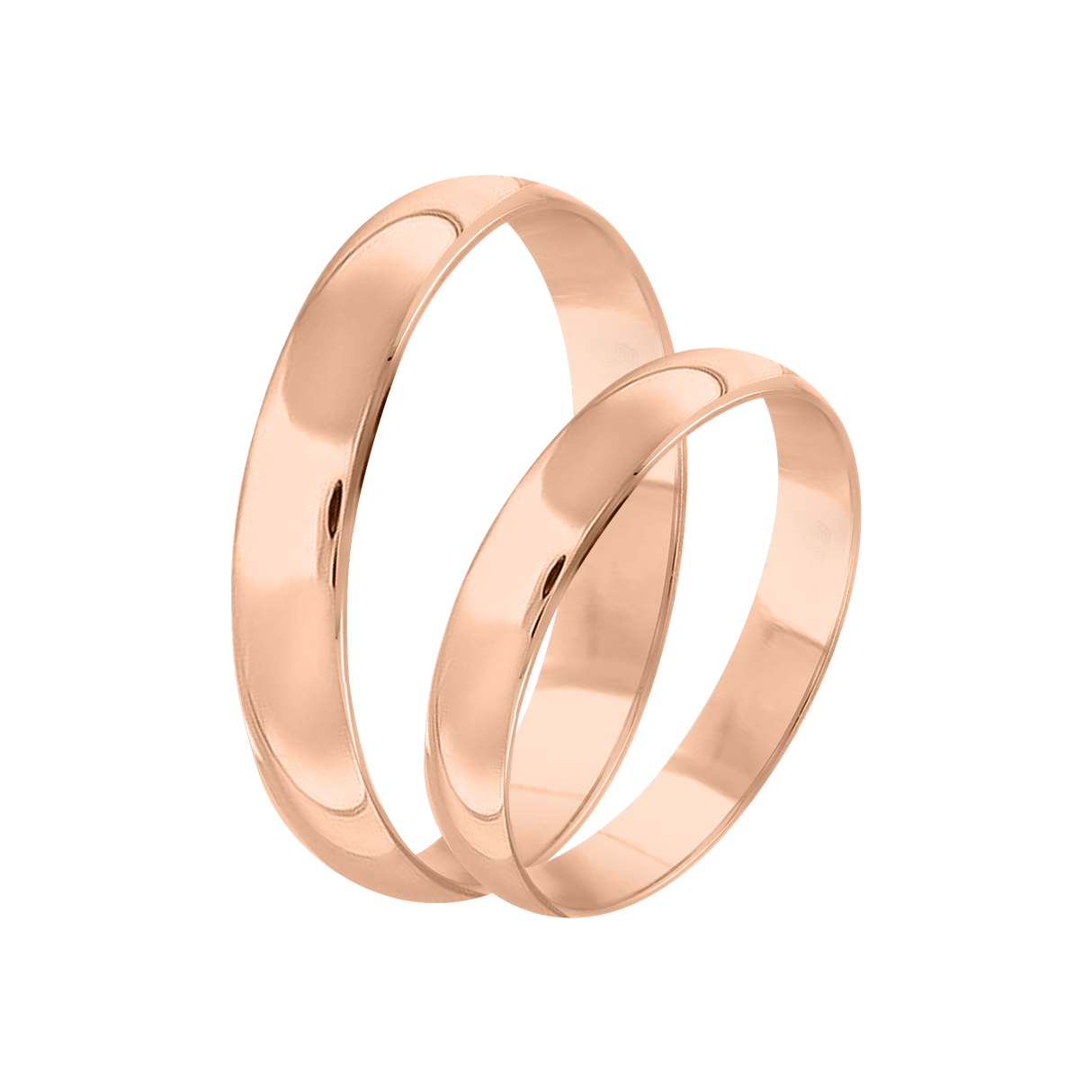 Klassische Trauringe aus 585er Rotgold, mit glänzender Oberfläche, Breite ≈ 3,5 mm.