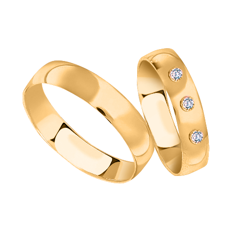 Die Tradition, bei der Eheschließung Ringe zu tauschen, stammt aus alten heidnischen Zeiten. Schon damals wurde dem Symbol dieses Rituals eine besondere Bedeutung beigemessen. Die Ägypter waren die Ersten, die Eheringe aus Gold trugen – am Ringfinger der linken Hand. Der Legende nach führt von diesem Finger eine „Liebesader“ direkt zum Herzen. Im 9. Jahrhundert erlaubte Papst Nikolaus den Christen, Eheringe zu verwenden. Seitdem gilt der Ring als Symbol der Treue, Beständigkeit und Liebe. Indem sich Braut und Bräutigam gegenseitig die Ringe anstecken, treten sie in eine offizielle Ehe ein. Durch das tägliche Tragen dieser Schmuckstücke zeigen sie ihren Wunsch, gemeinsam durchs Leben zu gehen.Wir präsentieren Ihnen Eheringe aus unserer neuen Kollektion, erhältlich in zwei Varianten – mit und ohne Diamanten. Sie strahlen Harmonie und Würde aus. Das leuchtende Gelbgold und die funkelnden Diamanten ziehen die Blicke auf sich und machen diesen Ehering zu einem ganz besonderen Schmuckstück. Die Einfassung von drei Diamanten verleiht dem Ring einen festlichen und bedeutungsvollen Charakter – schließlich ist er seit dem Hochzeitstag ein Symbol für die Ehe.
